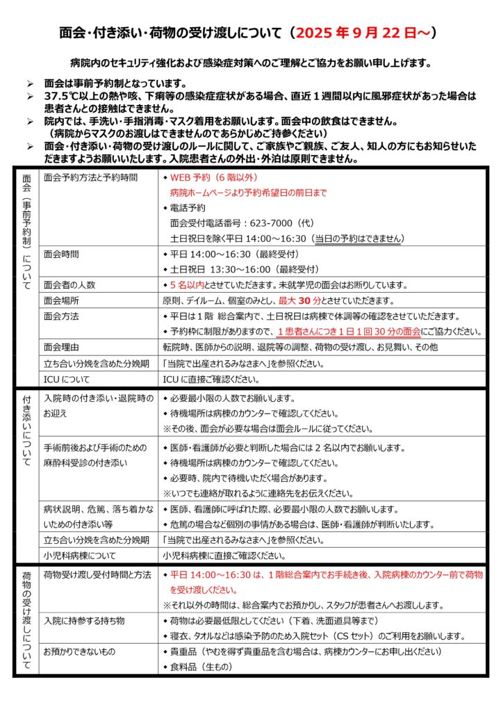 患者さんの安全と療養環境の保持のため、皆様のご理解とご協力を心よりお願い申し上げます。